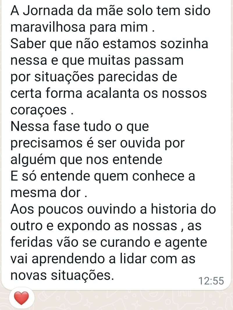 Acredito na força do grupo, mães solo unidas têm o poder de fortalecer umas às outras. Estar em um ambiente com histórias similares, faz com que as mulheres sintam-se pertencentes e acolhidas. Ter com quem compartilhar suas tristezas, aflições e vitórias, pode tornar mais leve a jornada da mãe solo.
